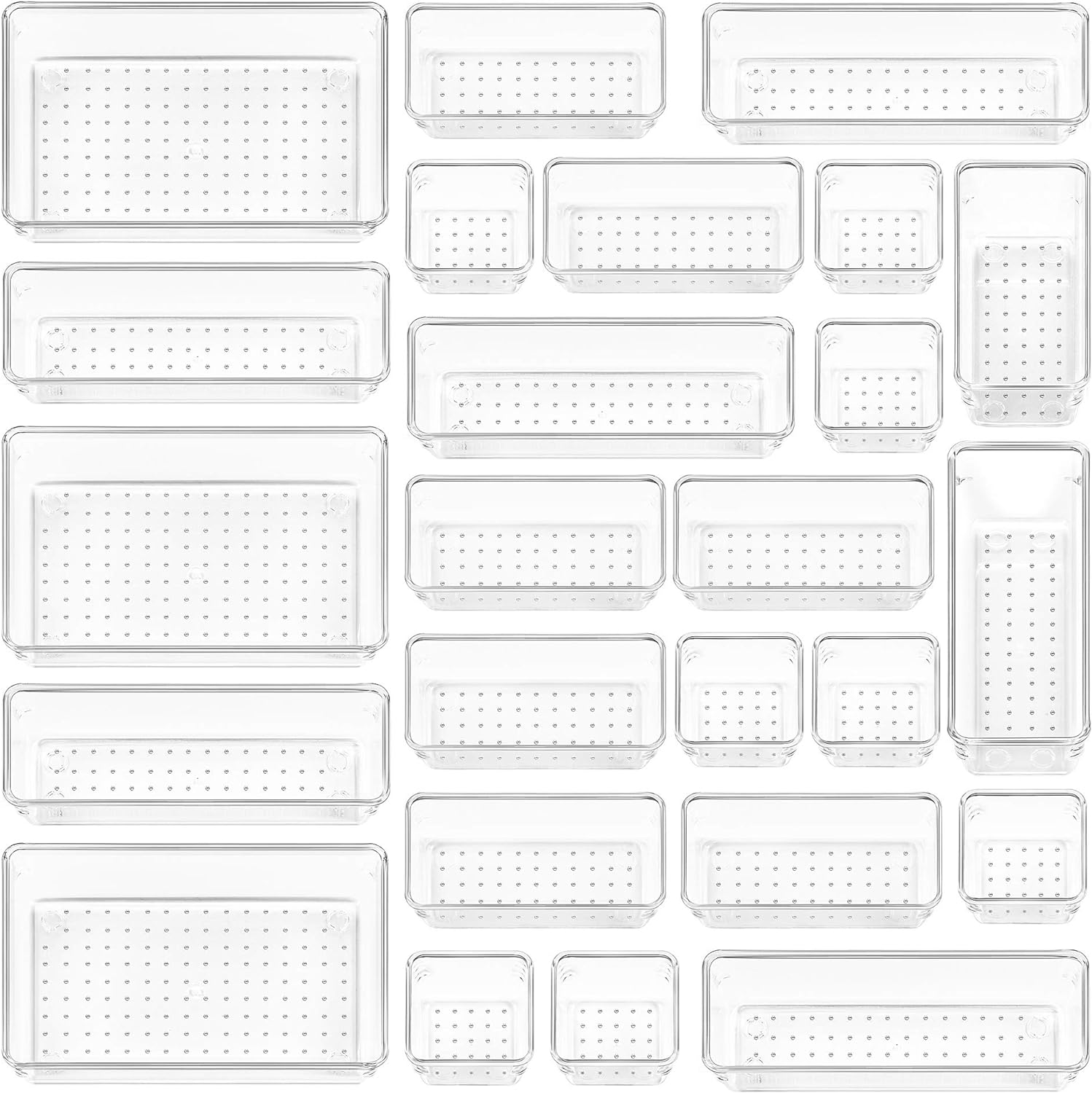 25 PCS Clear Plastic Drawer Organizers Set